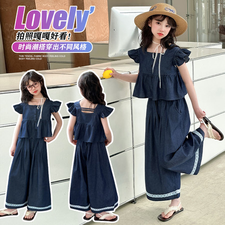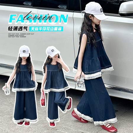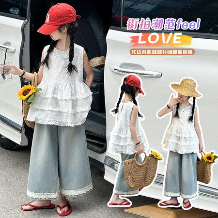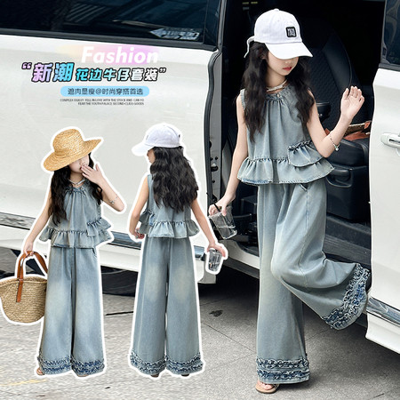 阿*糯下载视频“602无袖花边牛仔套装”